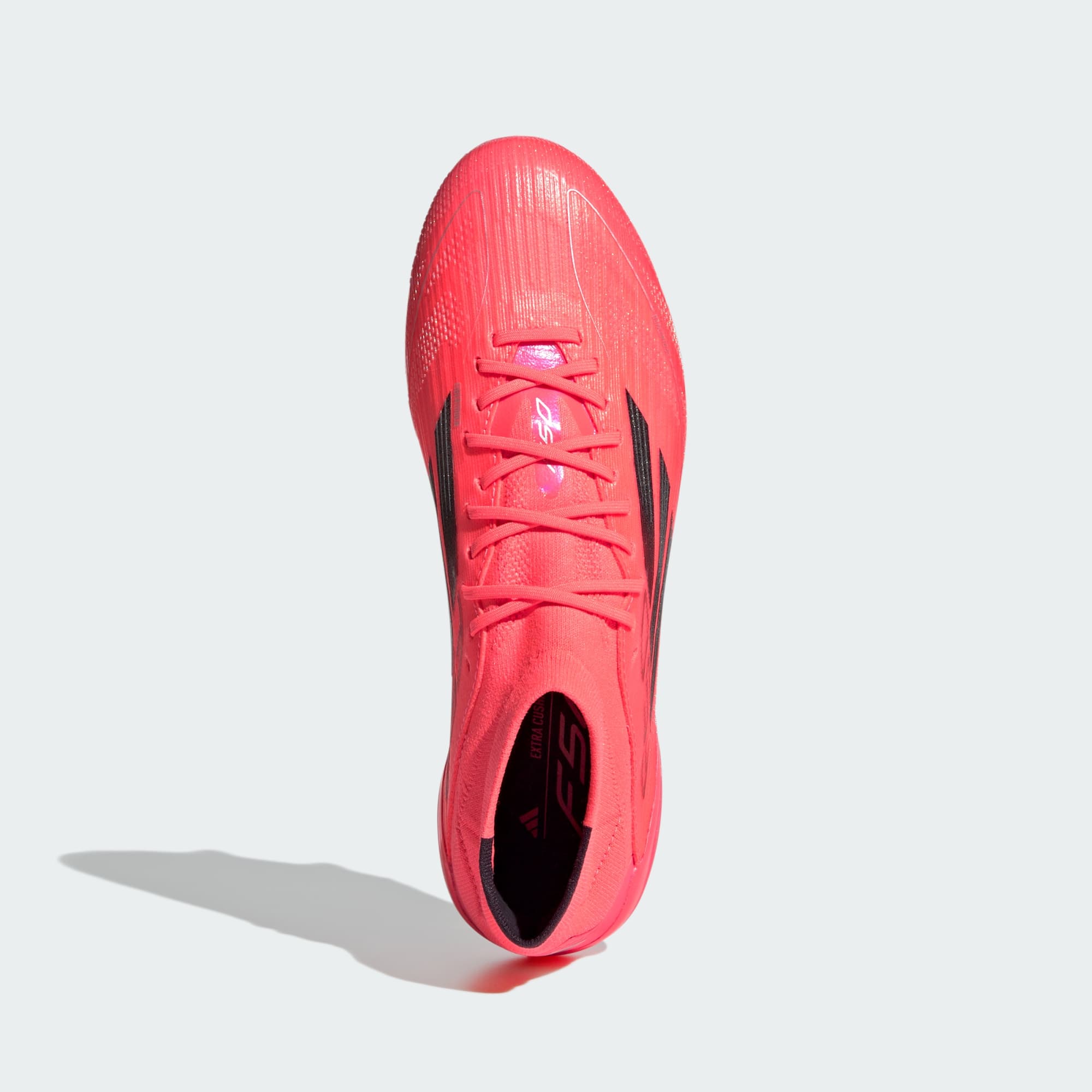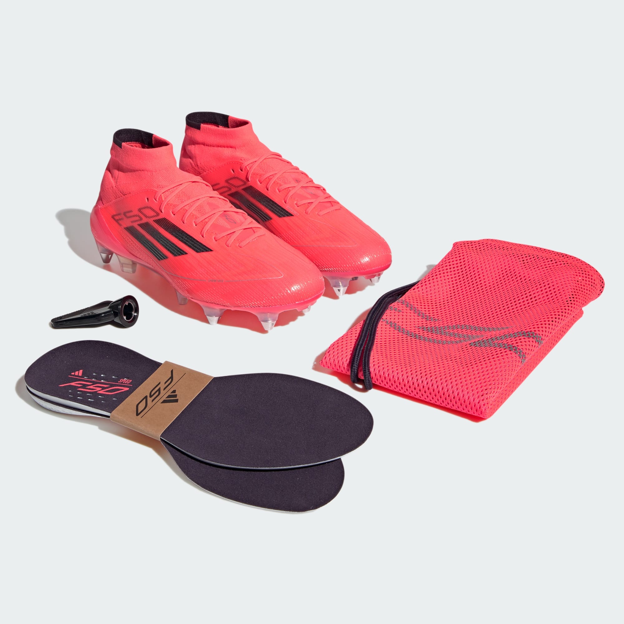 Free the fast with the adidas F50. Created to unlock the full potential of your acceleration, movement and speed. The thin Fibertouch upper on these Elite football boots boasts a Sprintweb 3D texture for dribbling at speed. Underneath, a springy Sprintframe 360 outsole helps you accelerate on soft ground. Designed specifically for female athletes, the adidas PRIMEKNIT mid-cut collar and thick sockliner add extra support and comfort.