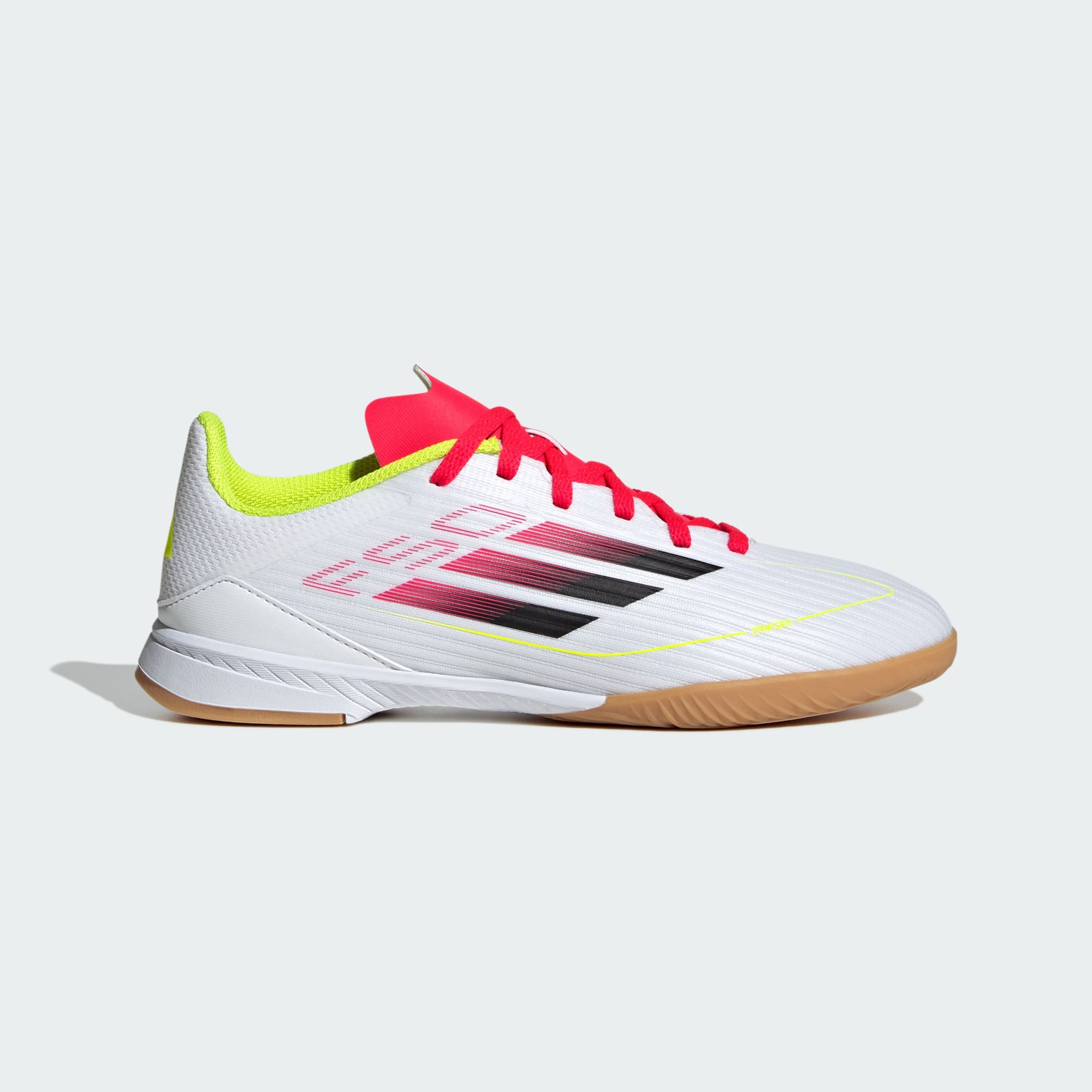 Durch und durch auf Speed getunt – mit diesem leichten adidas F50 pushst du das gegnerische Team ans Limit. Die League Version für Kinder und Teens sorgt mit einer perforierten Zunge für kühlen Tragekomfort. Das Fiberskin Obermaterial wird durch den Sprintgrid Print zum Eyecatcher. Außerdem garantiert dir die abriebfeste Non Marking Gummiaußensohle in Kombination mit der weichen EVA-Zwischensohle auf Hallenböden maximalen Grip und Dämpfung.